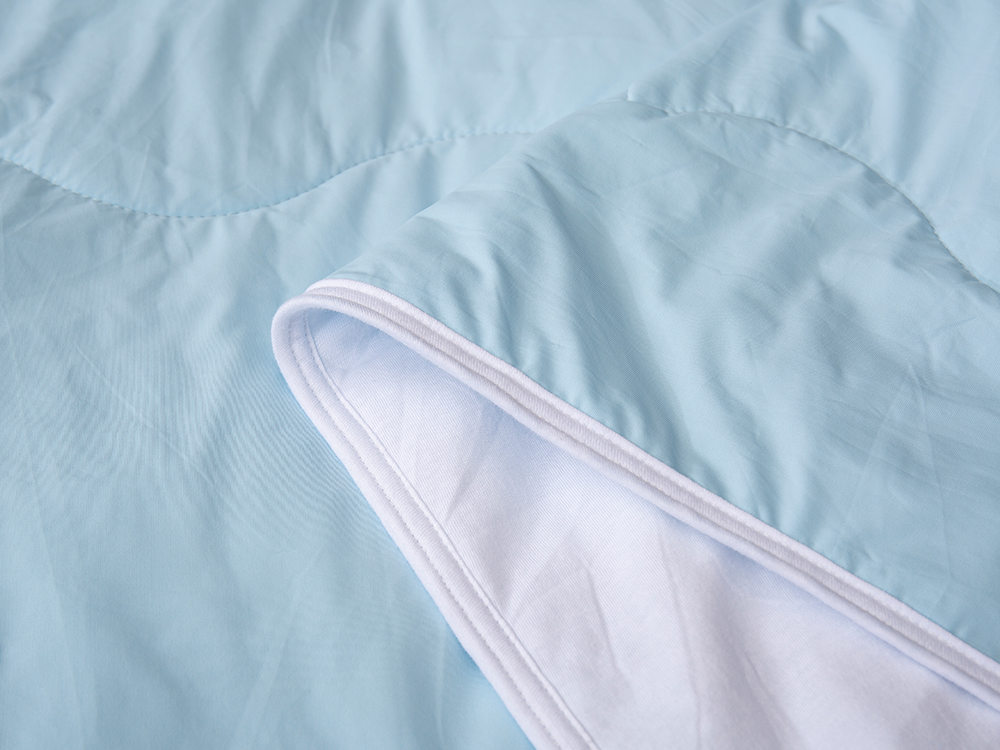 Ang sikat na niniting na paglamig ng quilt ay napaka-friendly sa balat at napakapopular sa tag-araw. Upang magkaroon ng isang mas mahusay na bentahe ng presyo at pagiging epektibo, ginagamit namin ang paglamig na tela sa isang tabi at microfiber brushed na tela sa kabilang panig.