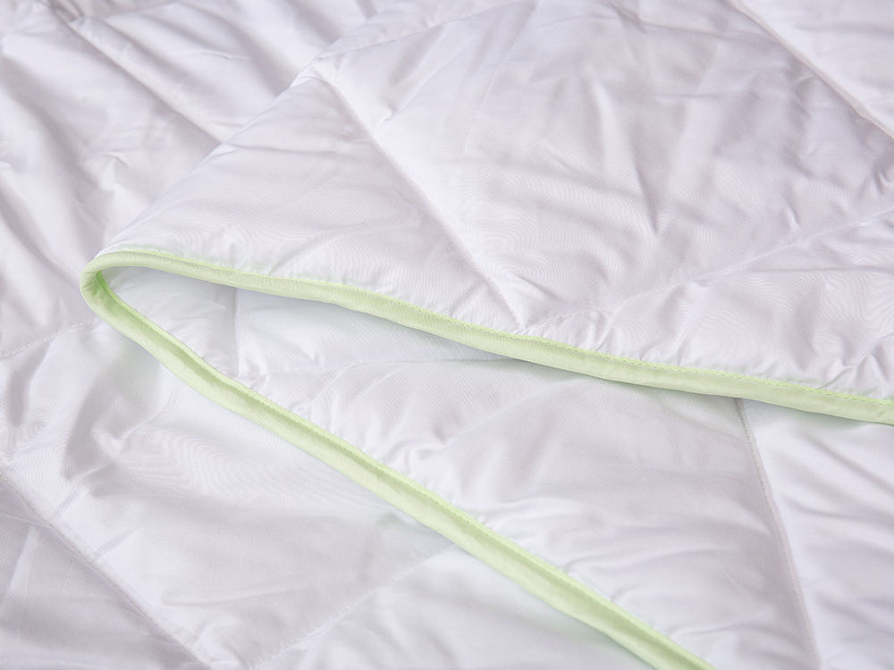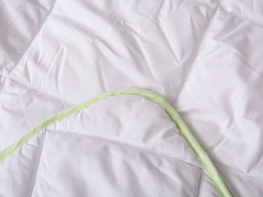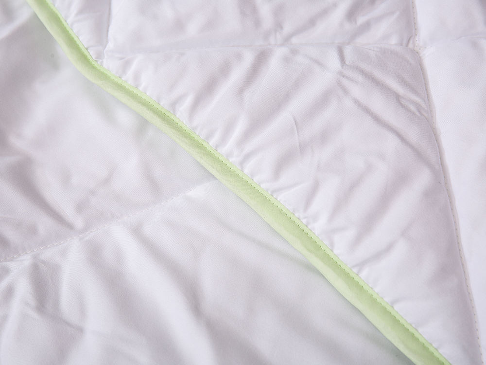 Ang Aloe vera-treated brushed na tela ay antibacterial at anti-mite, at mas malambot at friendly na balat. Puting tela na may light green aloe vera edging. Ito ay isang quilt na hindi mo maaaring tumanggi.