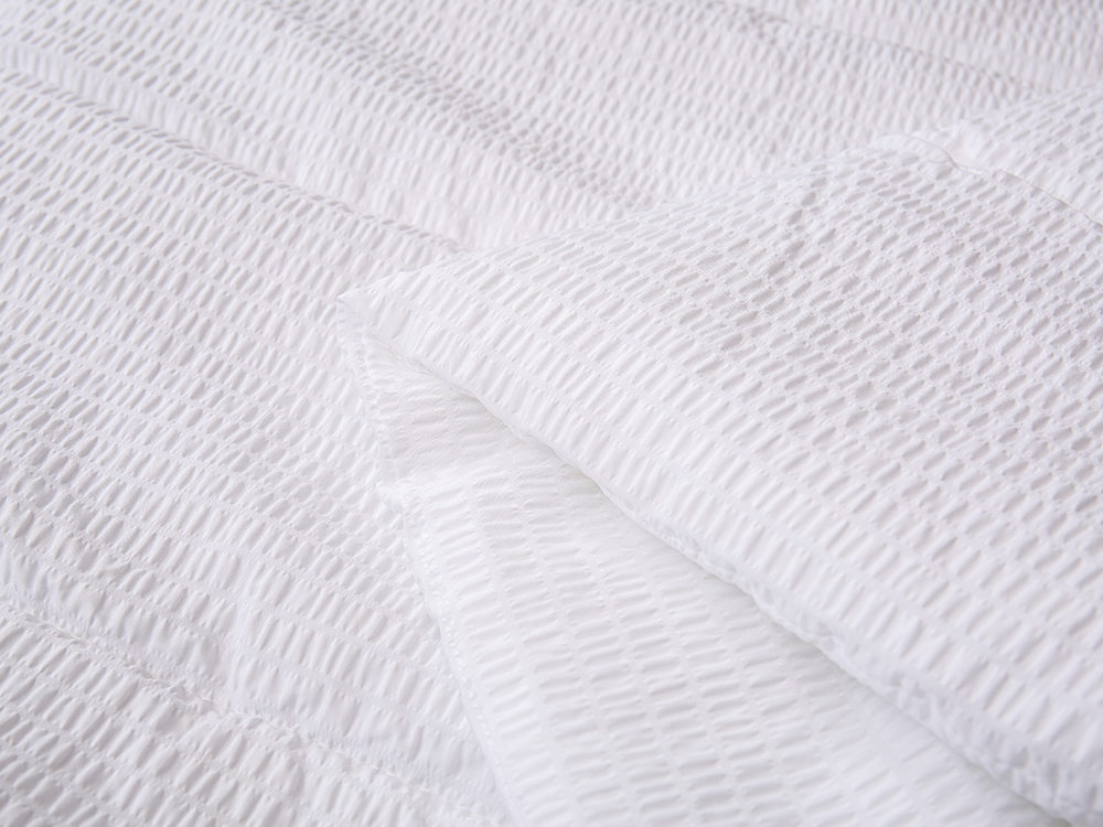 Ang harap at likod ng buong quilt ay gawa sa tela ng high-grade seersucker, na kung saan ay isang istilo na gusto ng maraming mga customer. Ang pangkalahatang epekto ay 3D. Ito ay isang napaka -tanyag na istilo sa merkado sa taong ito at napakapopular sa mga kabataan.